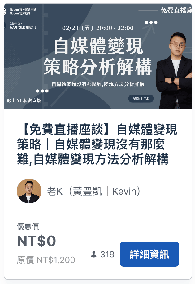 三月一樣會有免費的自媒體座談直播,到時會在跟大家分享報名方式!