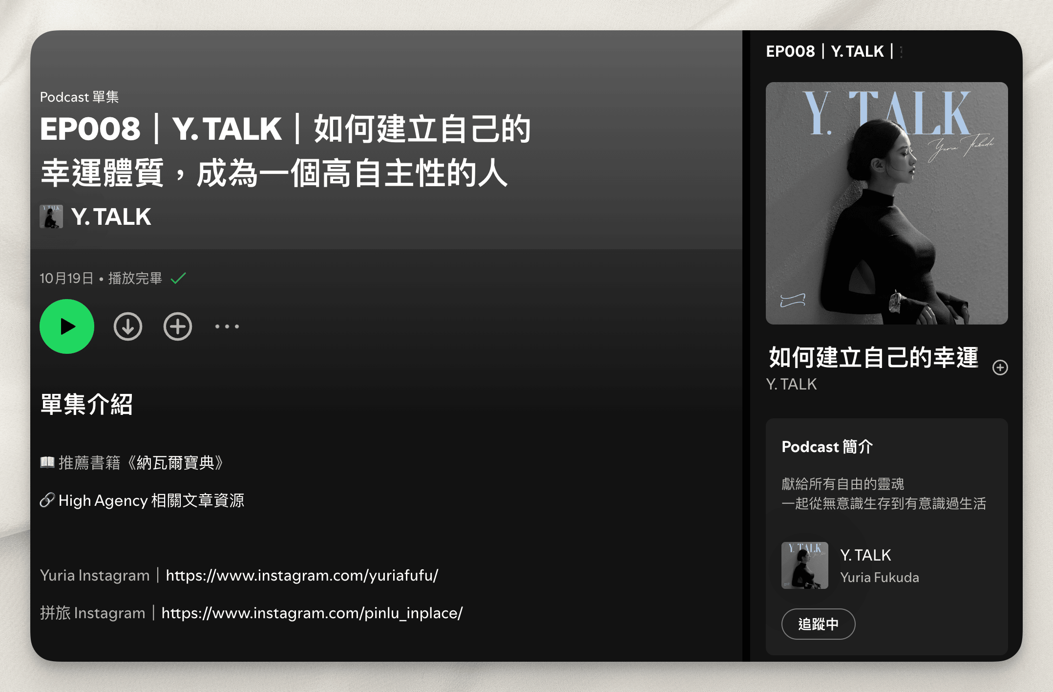 而我在整個過程中,其實最讓我驚豔的是:我開始更有意識地去拍照、錄影,因為我知道我腦袋裡面想要呈現的是什麼樣的感覺,不再是無腦收集素材 ✅ 開始長內容佈局 - Podcast 要從一個陌生客到信任你的客戶,他需要接觸你至少 7 小時,也因此我開始經營 Podcast《 Y. TALK 》,讓我的受眾更信任我! 而 Podcast 的內容佈局也是圍繞拼旅跟 Yuria 在分享 ✅ 開始舉辦線下活動 - Sunday Journal Club 今年深深地意識到「線下」的連結遠遠大於「線上」,所以我從 11 月份開始舉辦 Sunday Journal Club Taiwan 拼旅書寫俱樂部 找一間舒適的空間,聚集一群想要好好照顧自己的自由靈魂,透過書寫跟自己深度對話,同時也跟參與的夥伴們建立「深度」的連結 而我也透過線下活動獲取了我的客戶! ✅ 推出品牌周邊 這個也是我沒有預期的,因為設計出了新的 LOGO,社群內的會員開始敲碗出周邊! 所以我也正式推出了拼旅的周邊,讓拼旅變成是一個「身份認同」 拼旅家就是自由靈魂的代表 ✅ 製作品牌說明書 最後完成以上事項後,我也製作了品牌說明書,而這個說明書讓我