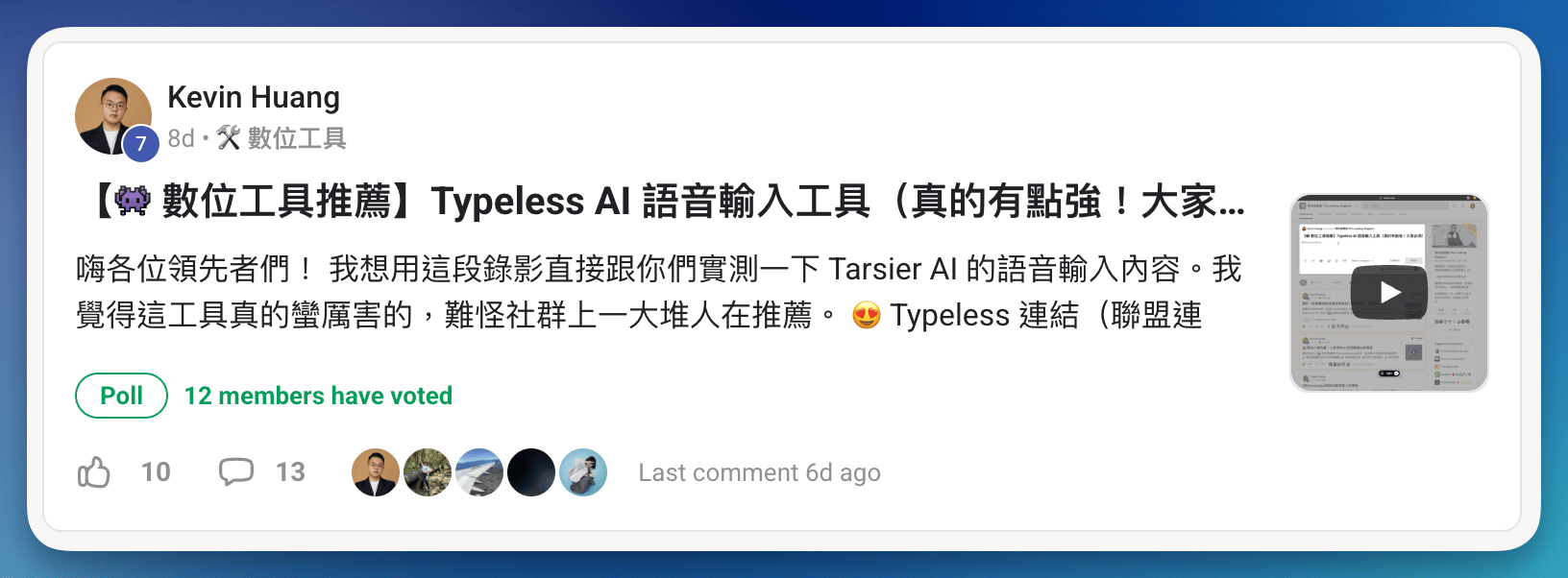 分享數位工具、自媒體創業經驗,以及團隊每月的成長、發生的各種故事。
